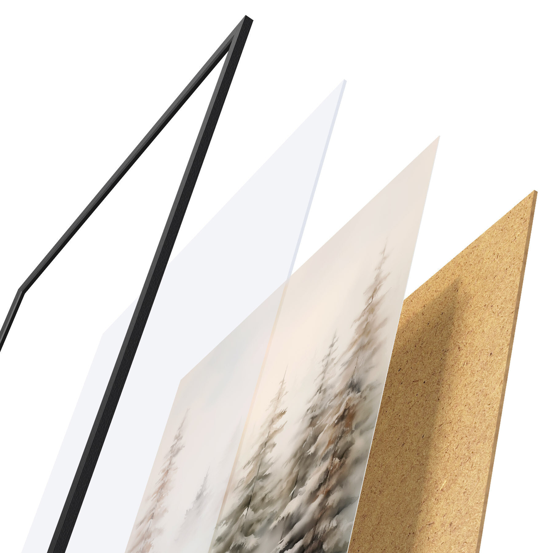 A poszter keretből, plexiből, nyomtatott képből és forgácslap hátlapból áll. A poszter a hátoldalon található rögzítőknek köszönhetően azonnal felakasztható a falra.