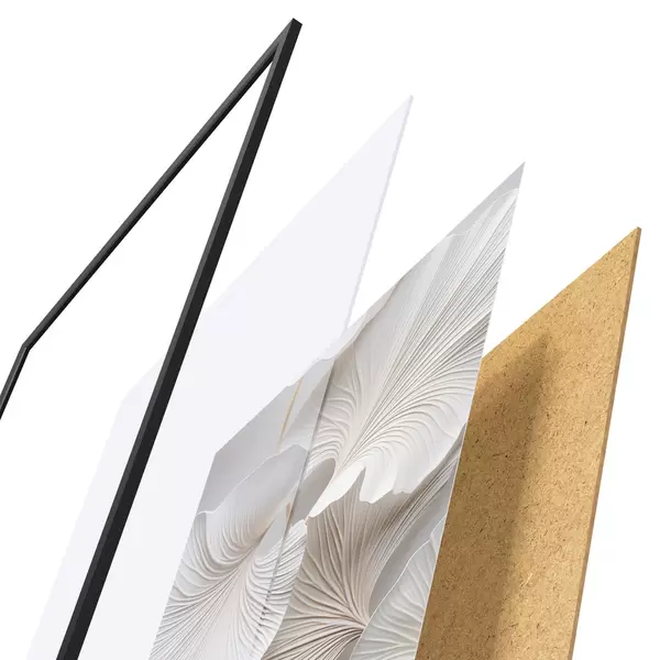 A poszter keretből, plexiből, nyomtatott képből és forgácslap hátlapból áll. A poszter a hátoldalon található rögzítőknek köszönhetően azonnal felakasztható a falra.