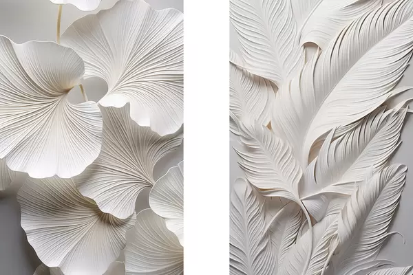 Poster Fehér ginkgo levelek és hosszú levelek bonyolult részletekkel, texturált és réteges hatást keltve, minimalista művészet Nr d01013