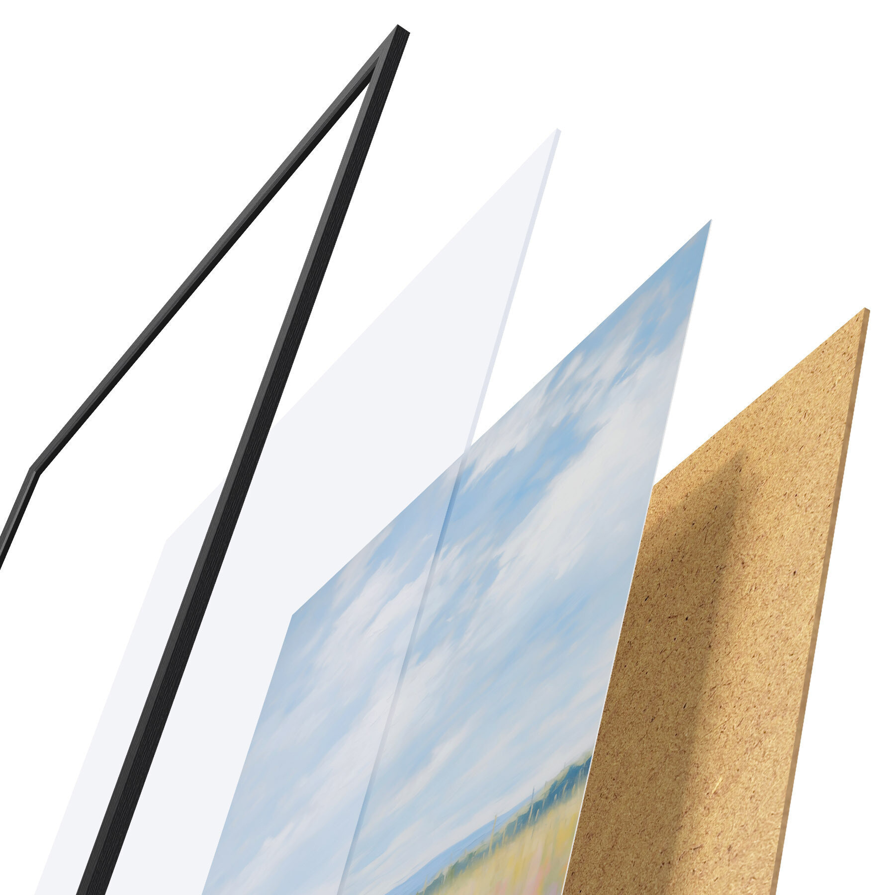 A poszter keretből, plexiből, nyomtatott képből és forgácslap hátlapból áll. A poszter a hátoldalon található rögzítőknek köszönhetően azonnal felakasztható a falra.