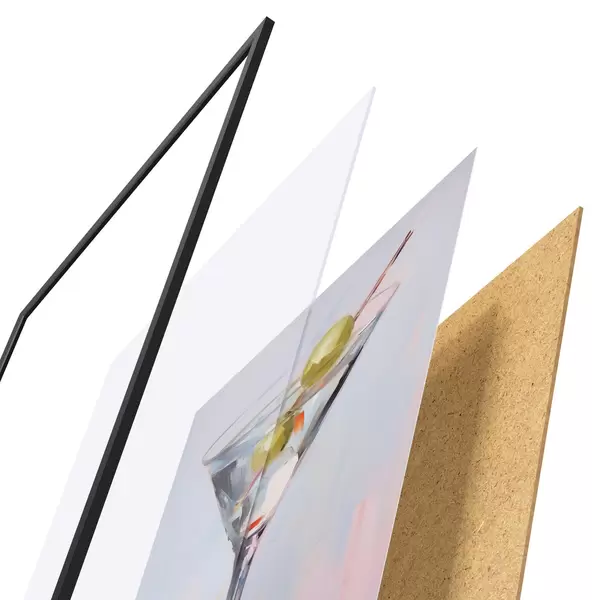 A poszter keretből, plexiből, nyomtatott képből és forgácslap hátlapból áll. A poszter a hátoldalon található rögzítőknek köszönhetően azonnal felakasztható a falra.