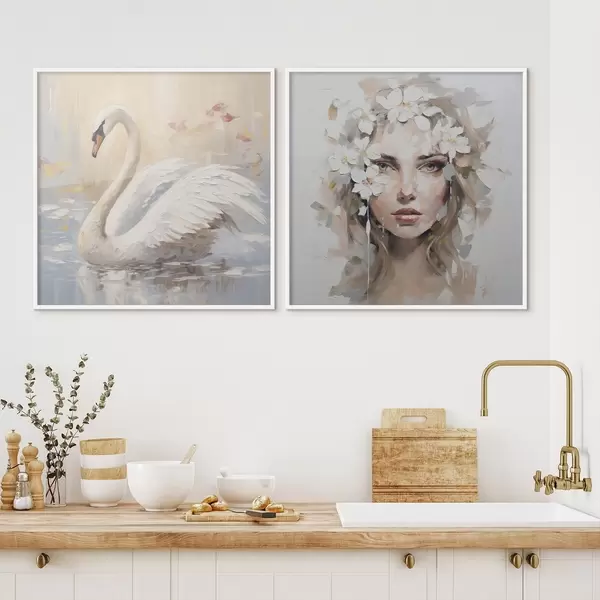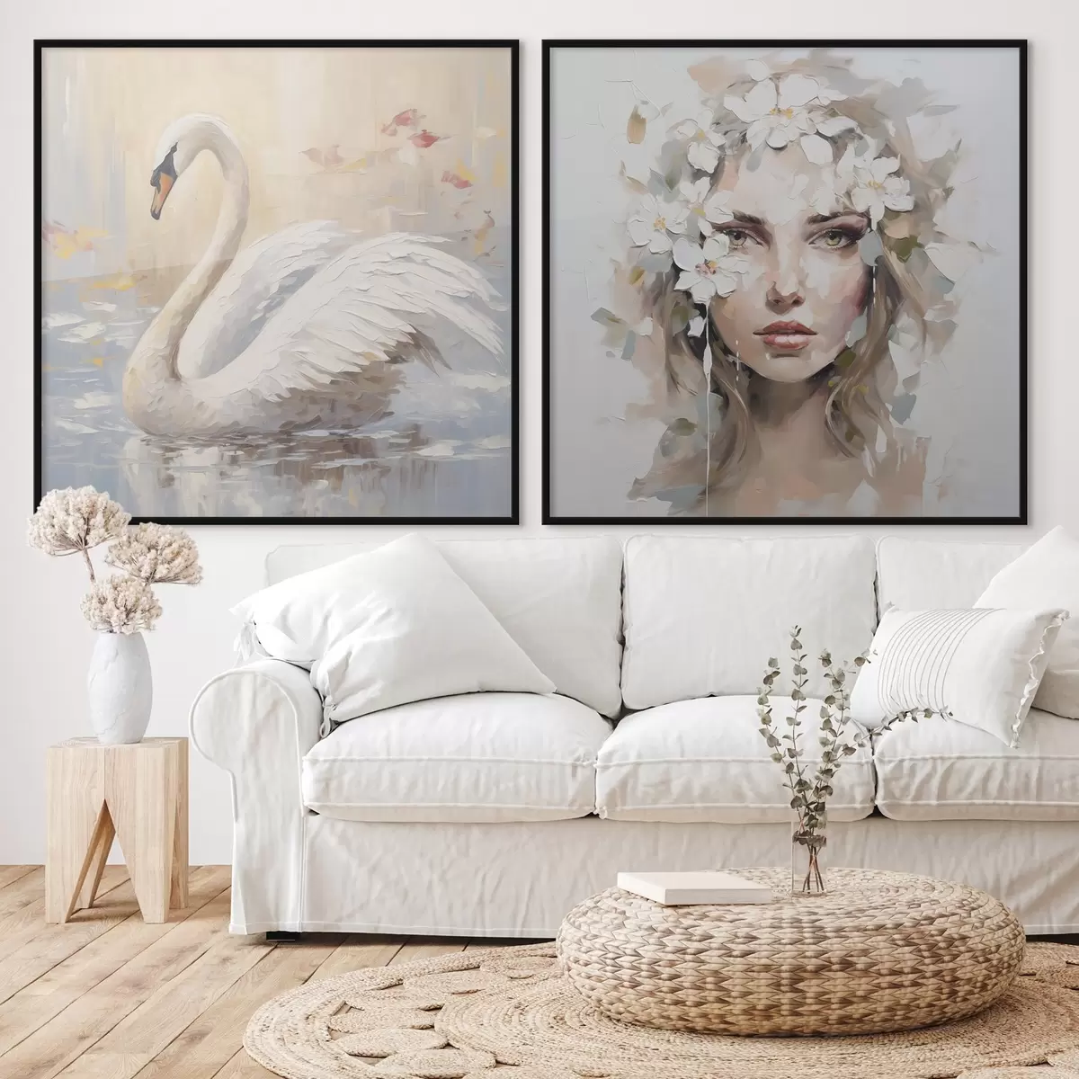 Poster Hattyú és lányportré, festménymásolat Nr d01030