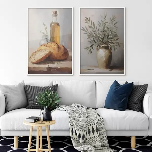 Poster Olajágak vázában, kenyér és egy üveg olaj, festménymásolat Nr d01035