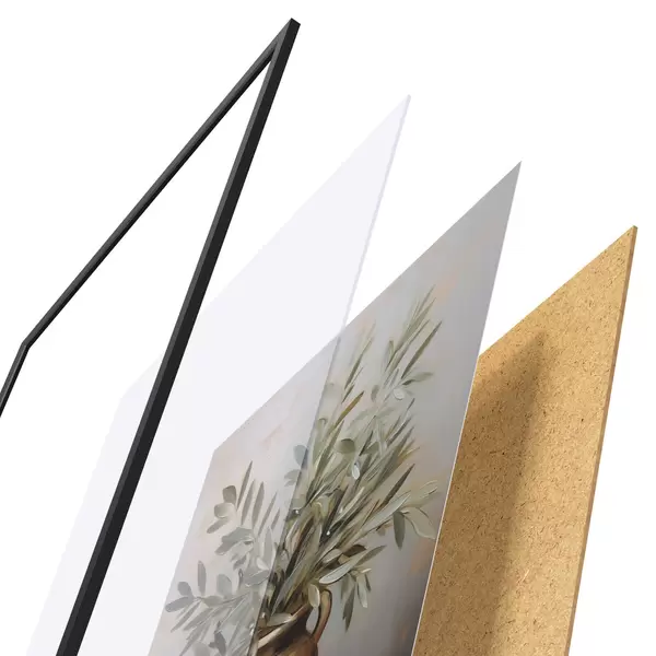 A poszter keretből, plexiből, nyomtatott képből és forgácslap hátlapból áll. A poszter a hátoldalon található rögzítőknek köszönhetően azonnal felakasztható a falra.