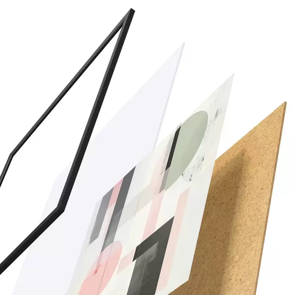 A poszter keretből, plexiből, nyomtatott képből és forgácslap hátlapból áll. A poszter a hátoldalon található rögzítőknek köszönhetően azonnal felakasztható a falra.