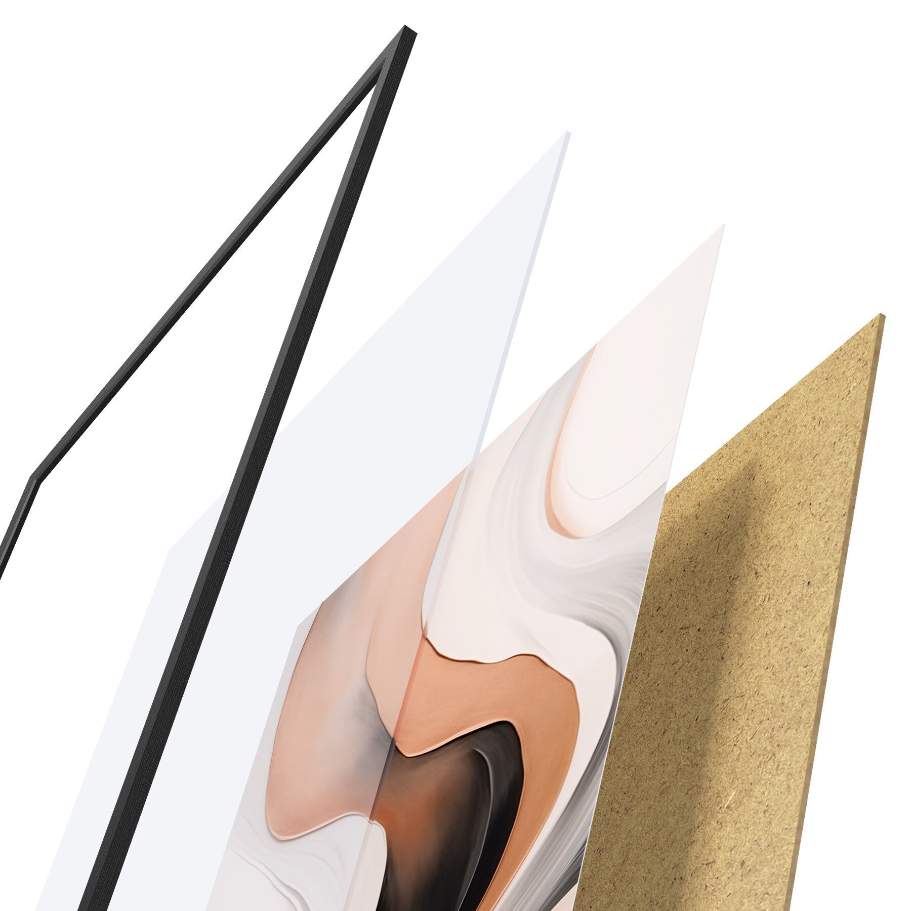 A poszter keretből, plexiből, nyomtatott képből és forgácslap hátlapból áll. A poszter a hátoldalon található rögzítőknek köszönhetően azonnal felakasztható a falra.