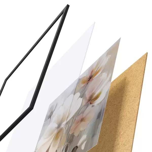 A poszter keretből, plexiből, nyomtatott képből és forgácslap hátlapból áll. A poszter a hátoldalon található rögzítőknek köszönhetően azonnal felakasztható a falra.