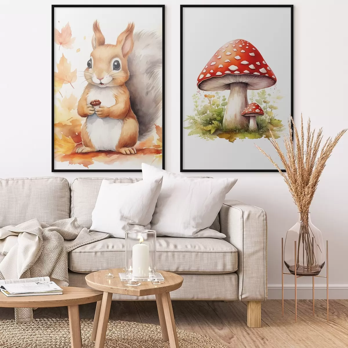 Poster Mókus és erdei gomba, légygomba, imitált akvarell Nr d01049