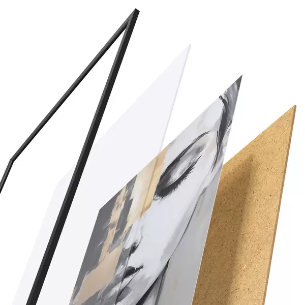 A poszter keretből, plexiből, nyomtatott képből és forgácslap hátlapból áll. A poszter a hátoldalon található rögzítőknek köszönhetően azonnal felakasztható a falra.