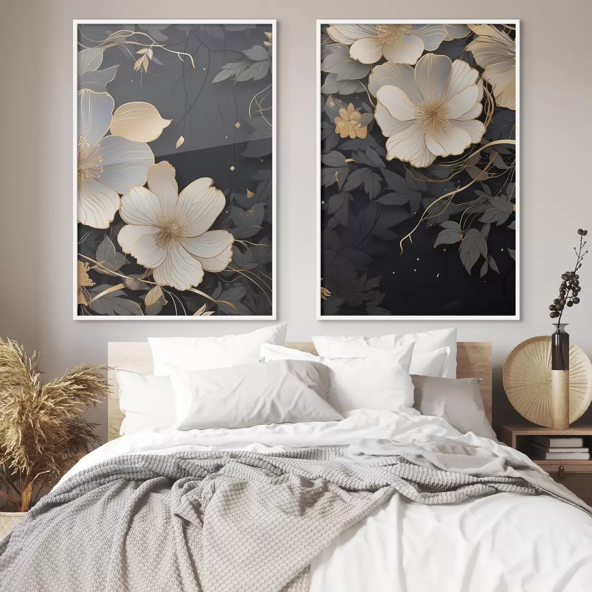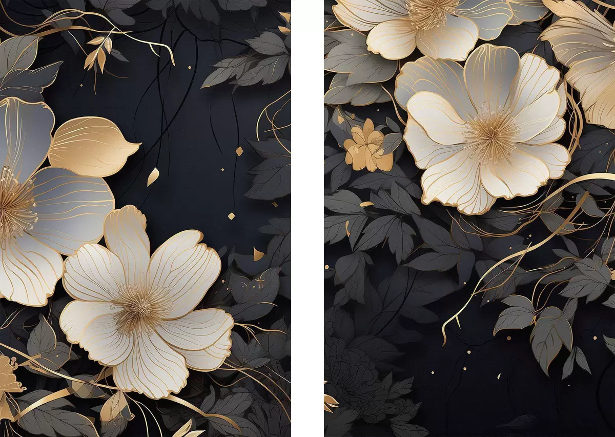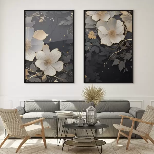 Poster Nagy absztrakt virágok sötét háttér előtt Nr d01066