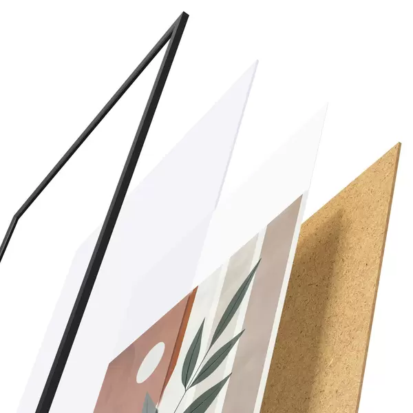 A poszter keretből, plexiből, nyomtatott képből és forgácslap hátlapból áll. A poszter a hátoldalon található rögzítőknek köszönhetően azonnal felakasztható a falra.