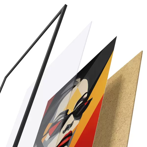 A poszter keretből, plexiből, nyomtatott képből és forgácslap hátlapból áll. A poszter a hátoldalon található rögzítőknek köszönhetően azonnal felakasztható a falra.