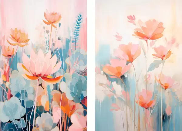 Poster Rózsaszín és kék színpalettás virágok akvarell harmóniája Nr d01084