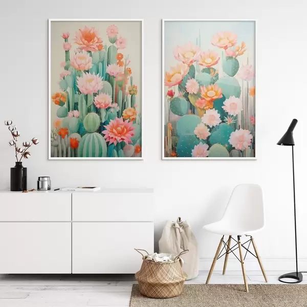 Poster Nagy virágú kaktuszok, pasztell színvilág és nyugalom érzése Nr d01086