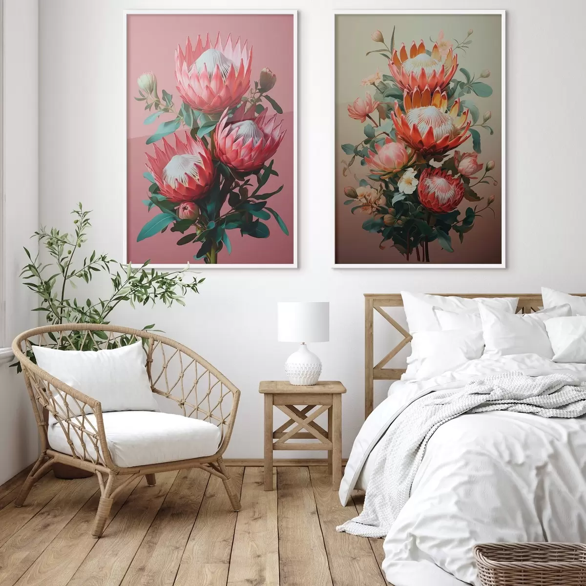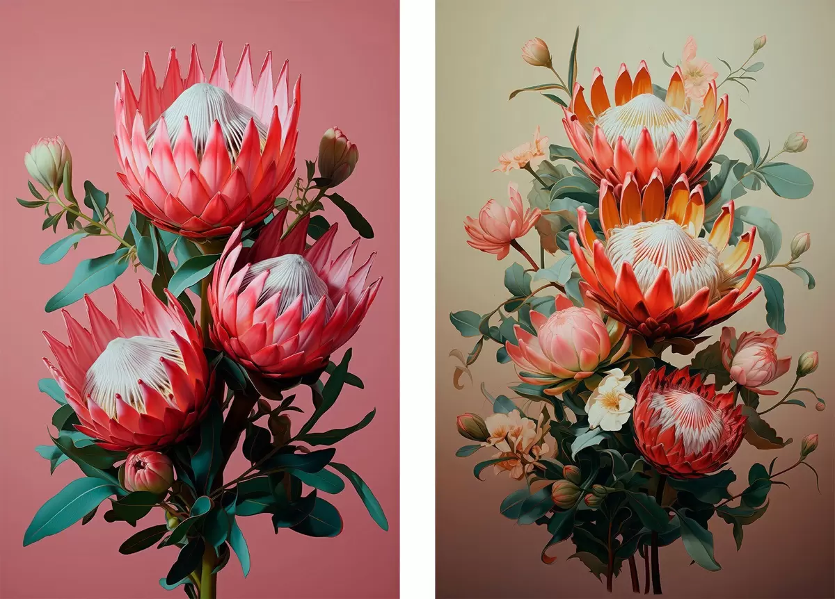 Plakát a sziklán Proteák két hangulatban: gazdag rózsaszín háttér és meleg olíva színátmenet d01092