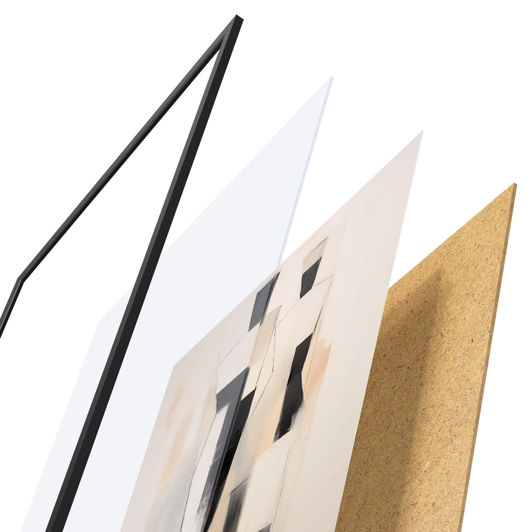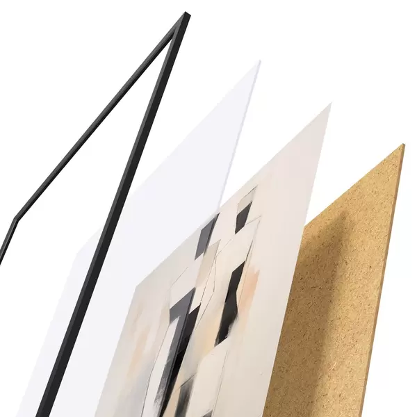 A poszter keretből, plexiből, nyomtatott képből és forgácslap hátlapból áll. A poszter a hátoldalon található rögzítőknek köszönhetően azonnal felakasztható a falra.