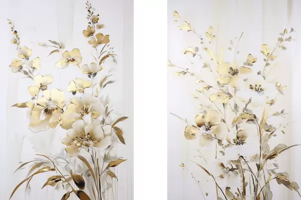 Poster Texturált sárga virágok és levelek fehér háttér előtt, finom ecsetvonásokkal Nr d01116