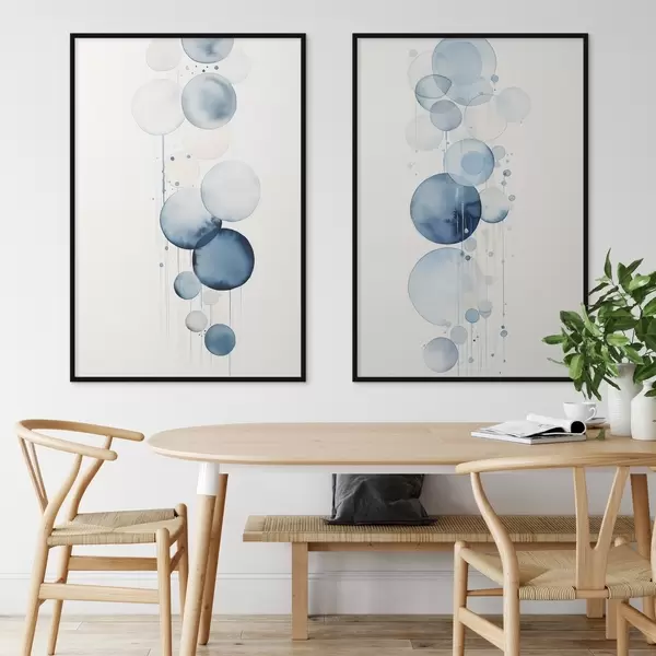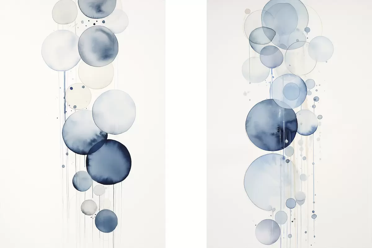 Plakát a sziklán Absztrakt, texturált, különböző méretű kék és fehér akvarell körök fehér háttér előtt d01118