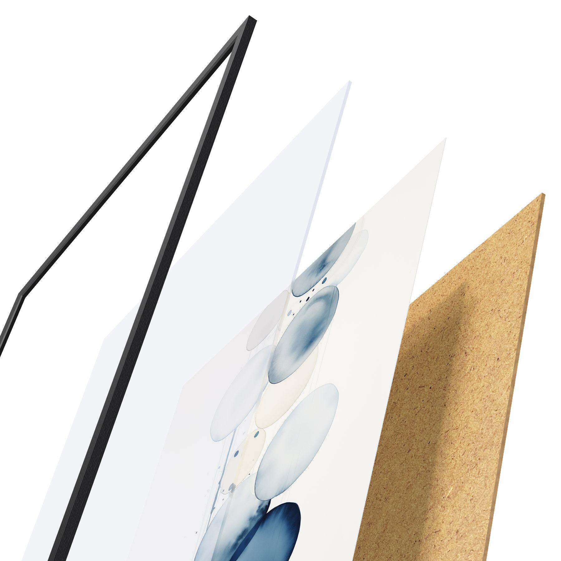 A poszter keretből, plexiből, nyomtatott képből és forgácslap hátlapból áll. A poszter a hátoldalon található rögzítőknek köszönhetően azonnal felakasztható a falra.