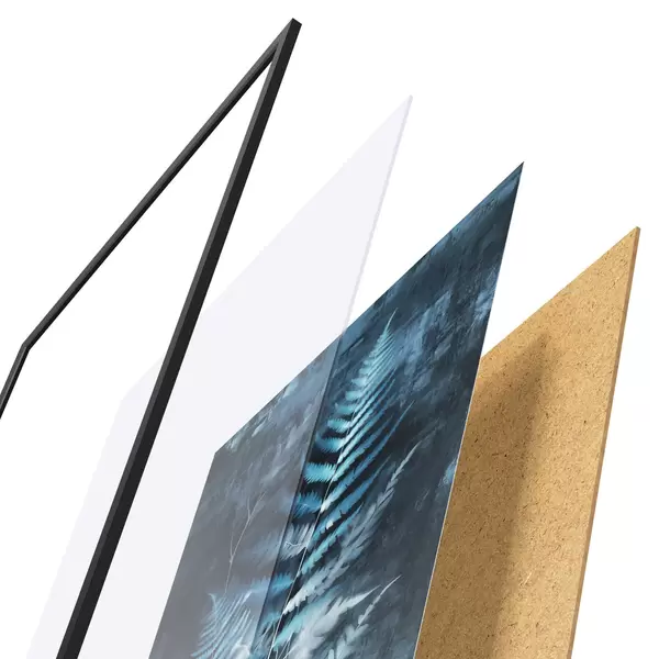 A poszter keretből, plexiből, nyomtatott képből és forgácslap hátlapból áll. A poszter a hátoldalon található rögzítőknek köszönhetően azonnal felakasztható a falra.