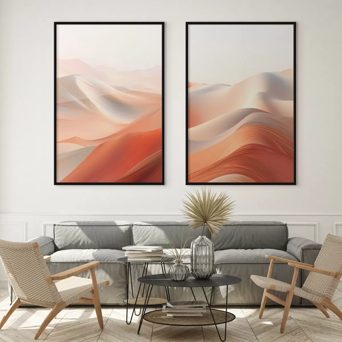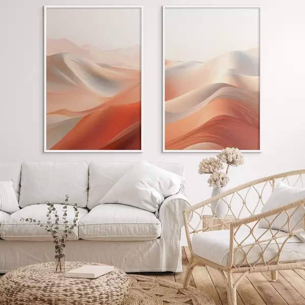 Poster Absztrakt sivatagi táj, meleg narancssárga és fehér tónusú, hullámzó homokdűnékkel Nr d01123