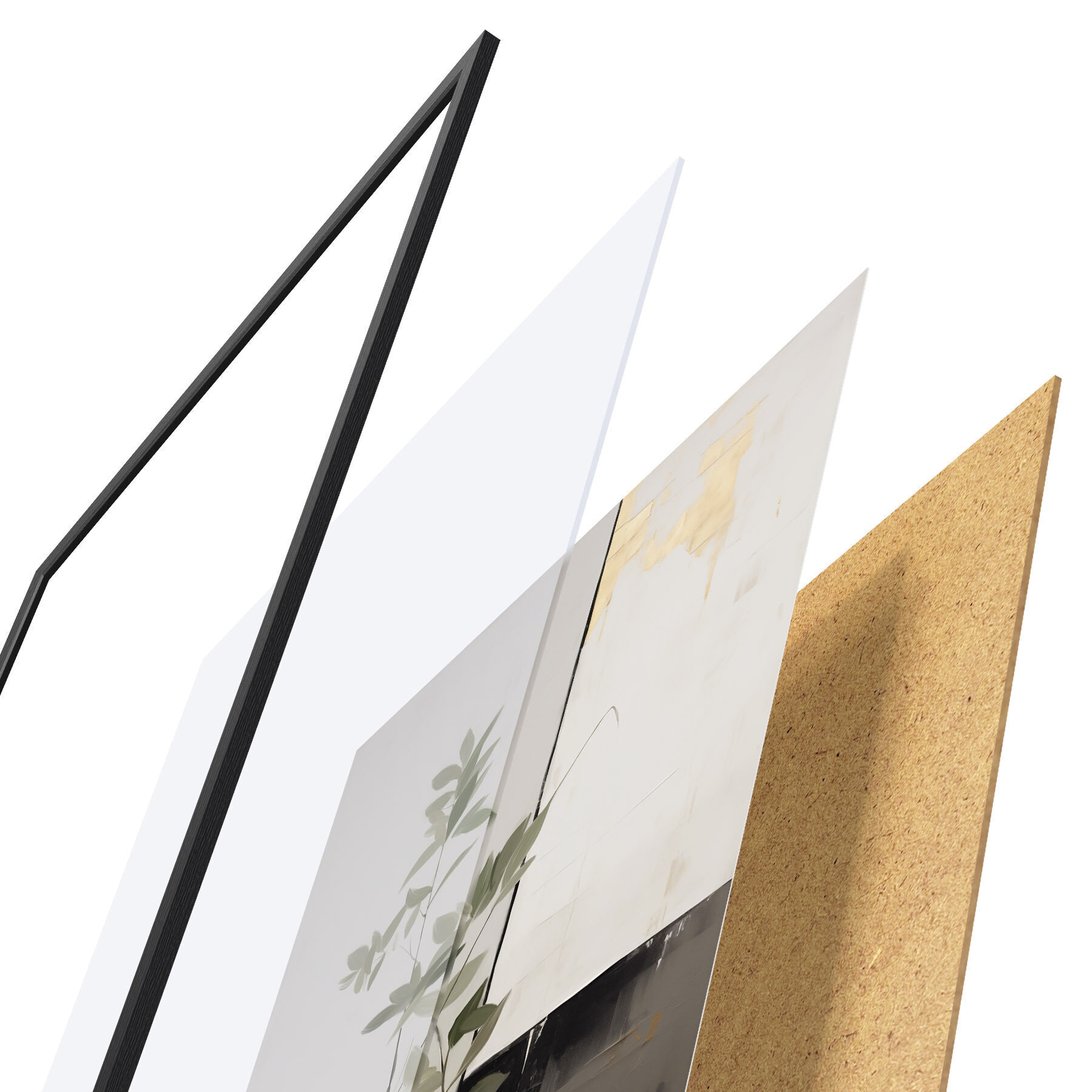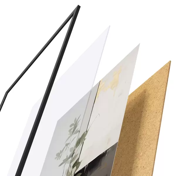 A poszter keretből, plexiből, nyomtatott képből és forgácslap hátlapból áll. A poszter a hátoldalon található rögzítőknek köszönhetően azonnal felakasztható a falra.