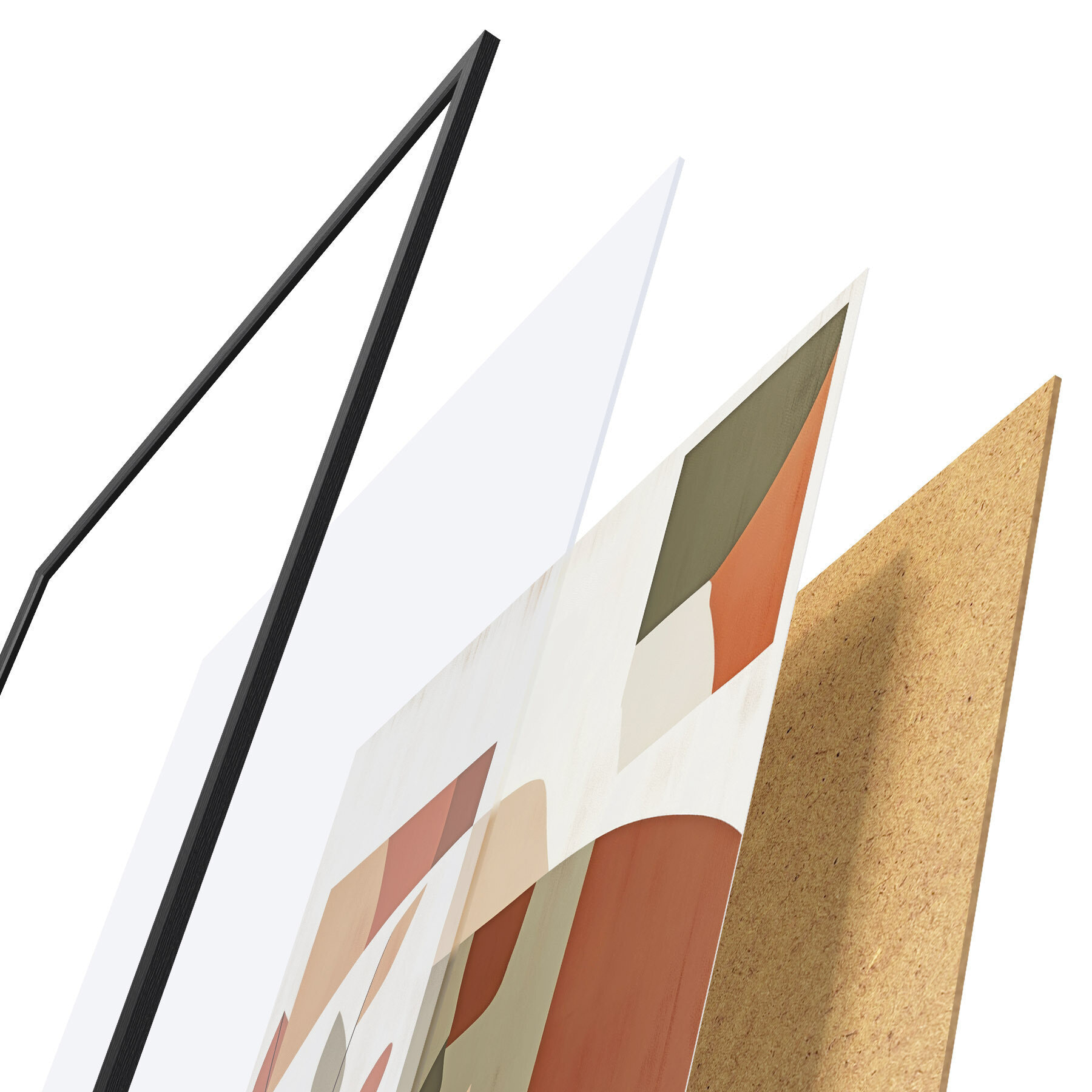 A poszter keretből, plexiből, nyomtatott képből és forgácslap hátlapból áll. A poszter a hátoldalon található rögzítőknek köszönhetően azonnal felakasztható a falra.