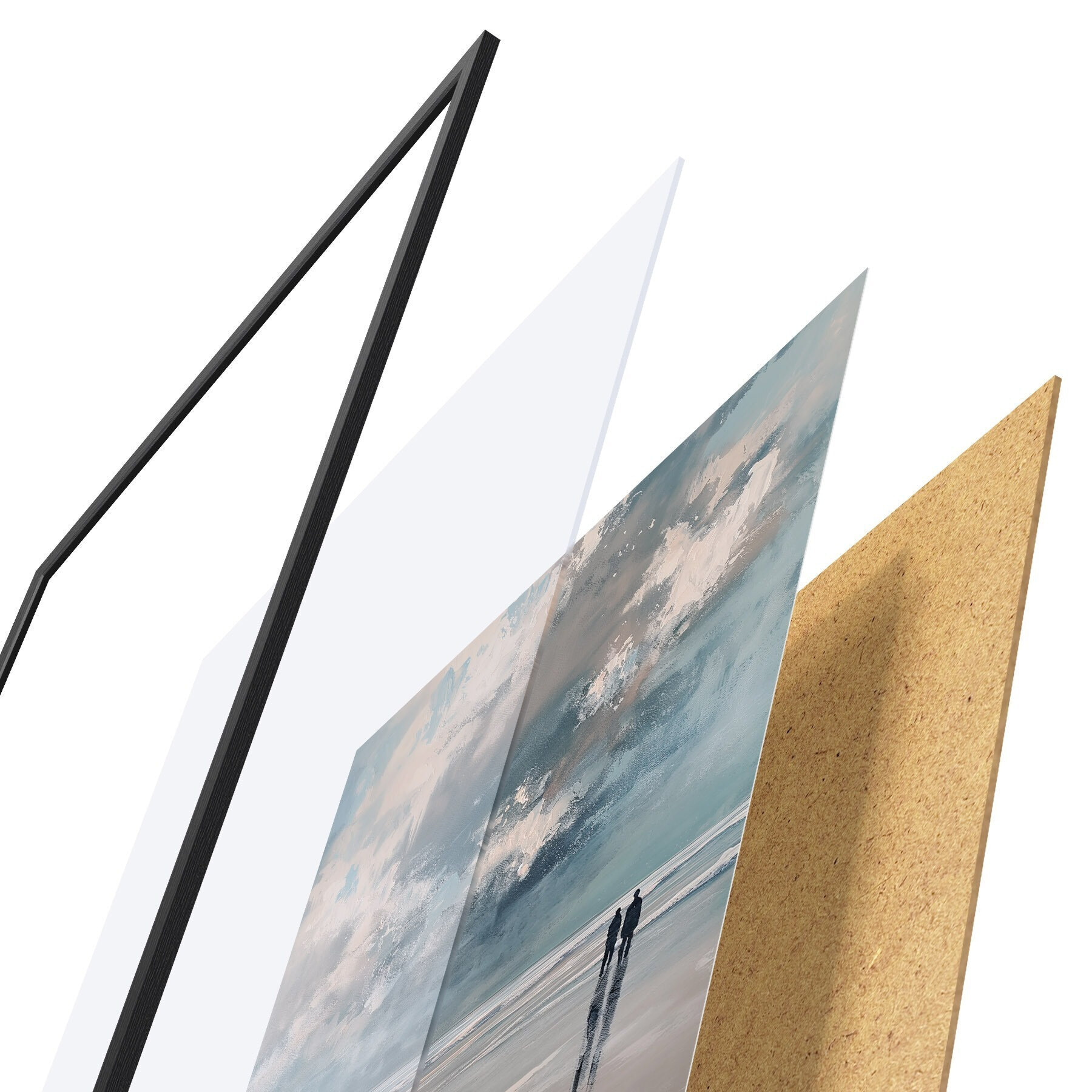 A poszter keretből, plexiből, nyomtatott képből és forgácslap hátlapból áll. A poszter a hátoldalon található rögzítőknek köszönhetően azonnal felakasztható a falra.