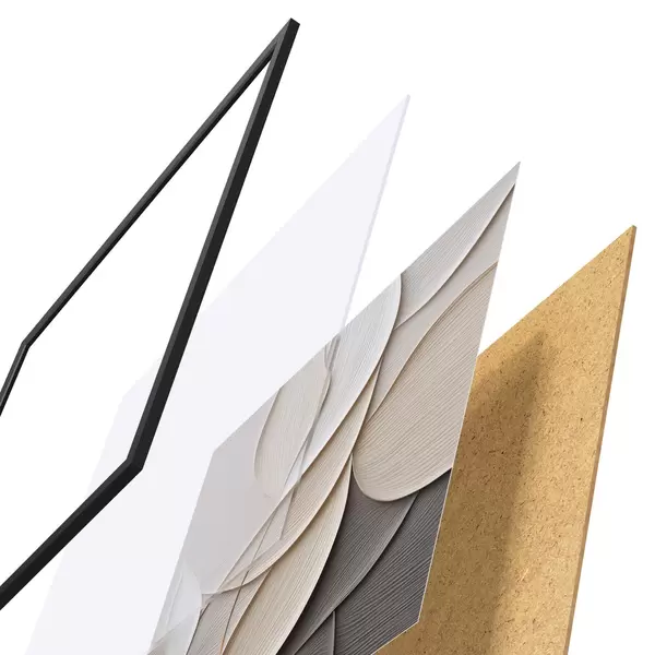A poszter keretből, plexiből, nyomtatott képből és forgácslap hátlapból áll. A poszter a hátoldalon található rögzítőknek köszönhetően azonnal felakasztható a falra.