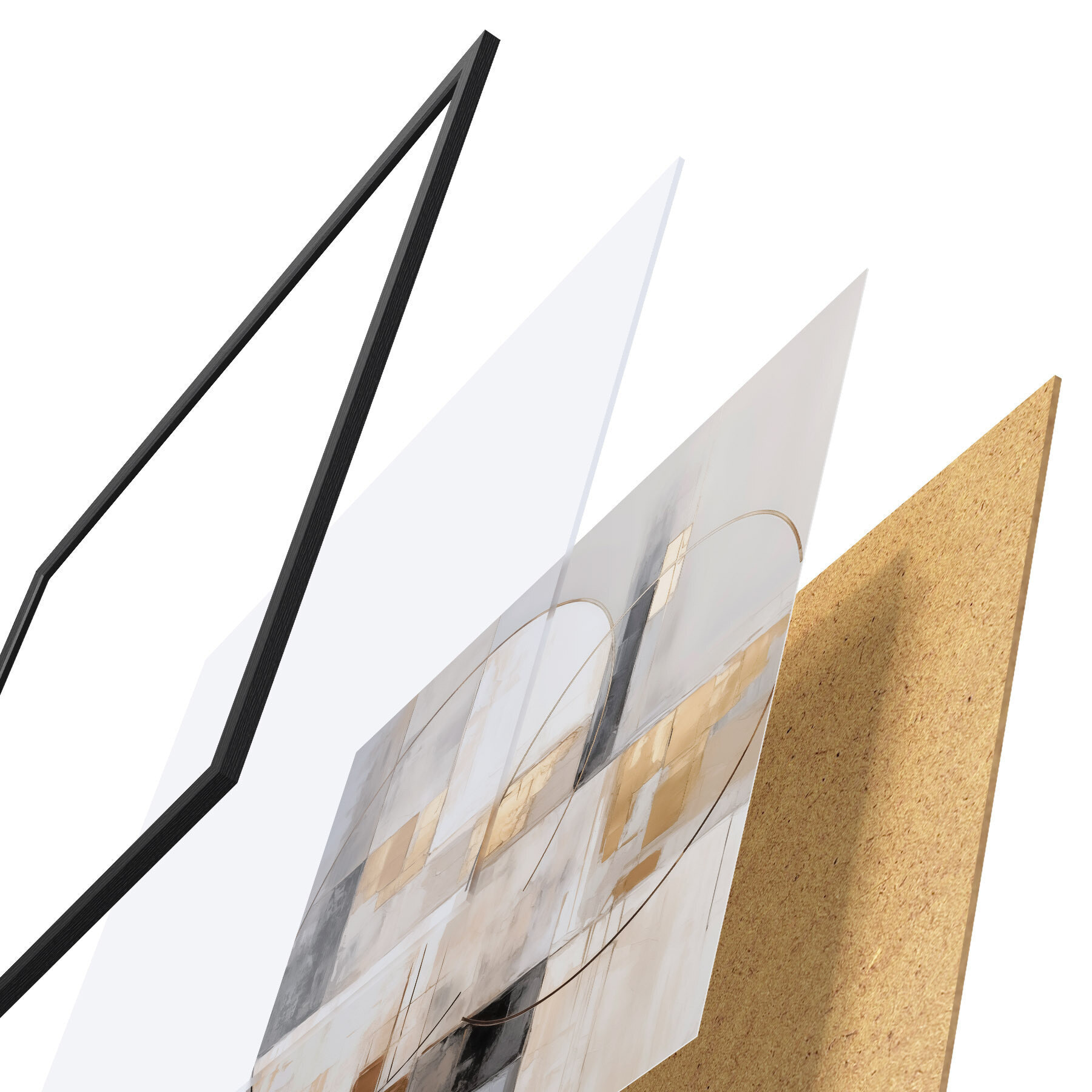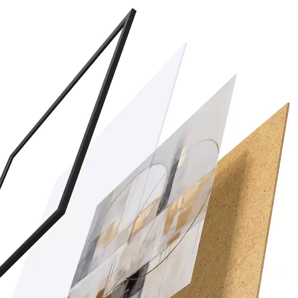 A poszter keretből, plexiből, nyomtatott képből és forgácslap hátlapból áll. A poszter a hátoldalon található rögzítőknek köszönhetően azonnal felakasztható a falra.