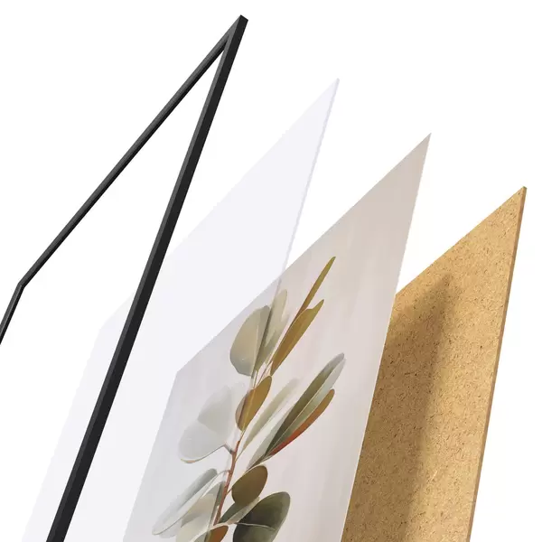 A poszter keretből, plexiből, nyomtatott képből és forgácslap hátlapból áll. A poszter a hátoldalon található rögzítőknek köszönhetően azonnal felakasztható a falra.