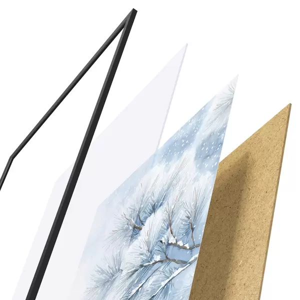 A poszter keretből, plexiből, nyomtatott képből és forgácslap hátlapból áll. A poszter a hátoldalon található rögzítőknek köszönhetően azonnal felakasztható a falra.