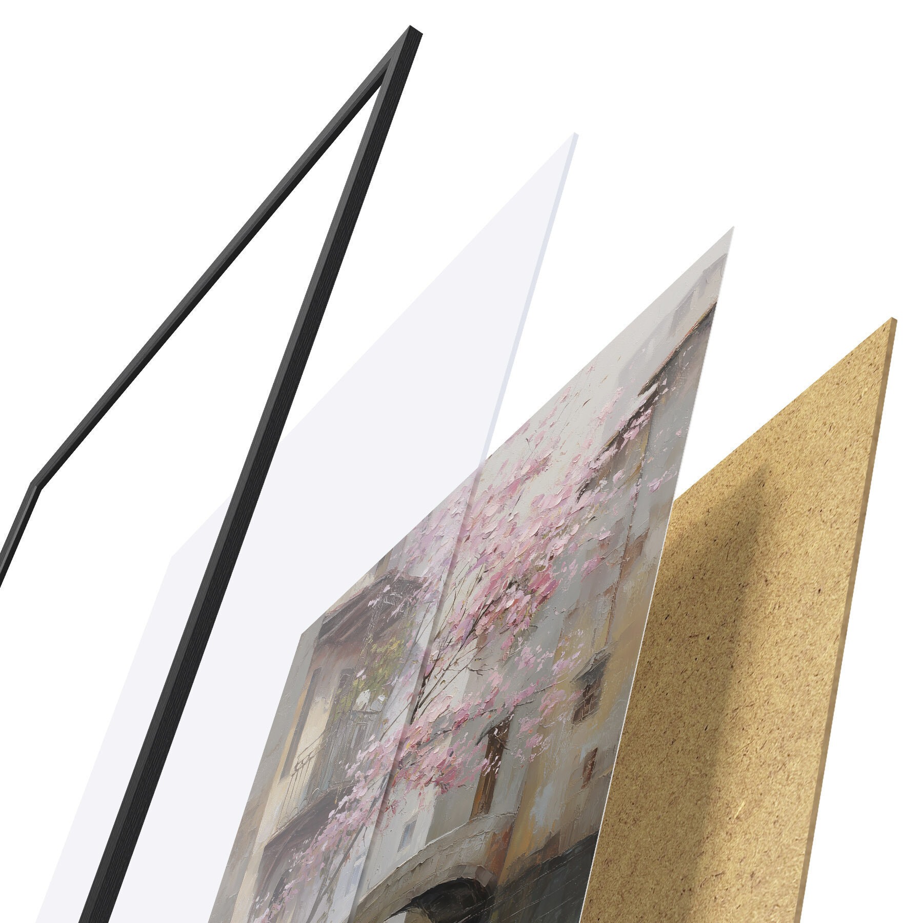 A poszter keretből, plexiből, nyomtatott képből és forgácslap hátlapból áll. A poszter a hátoldalon található rögzítőknek köszönhetően azonnal felakasztható a falra.