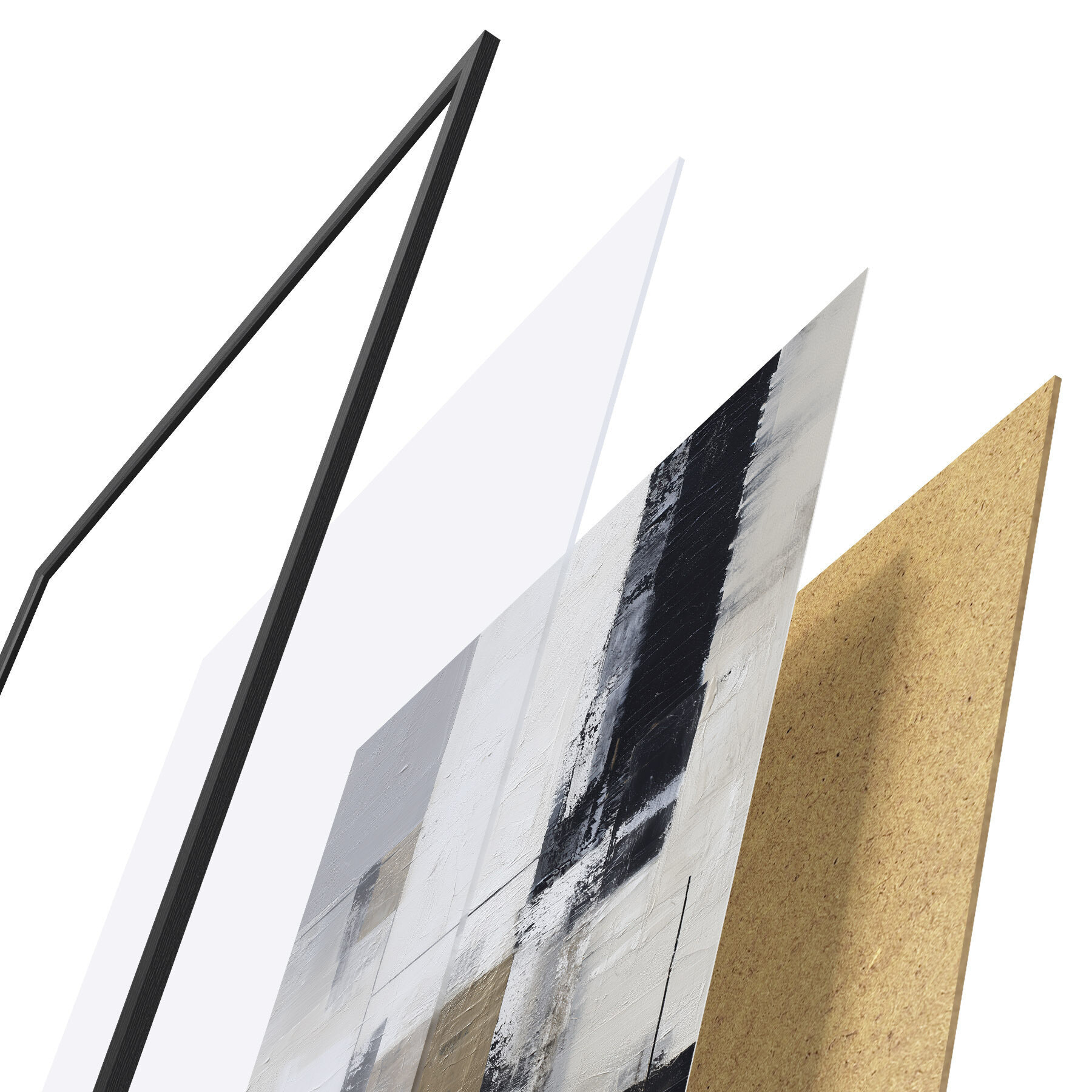A poszter keretből, plexiből, nyomtatott képből és forgácslap hátlapból áll. A poszter a hátoldalon található rögzítőknek köszönhetően azonnal felakasztható a falra.
