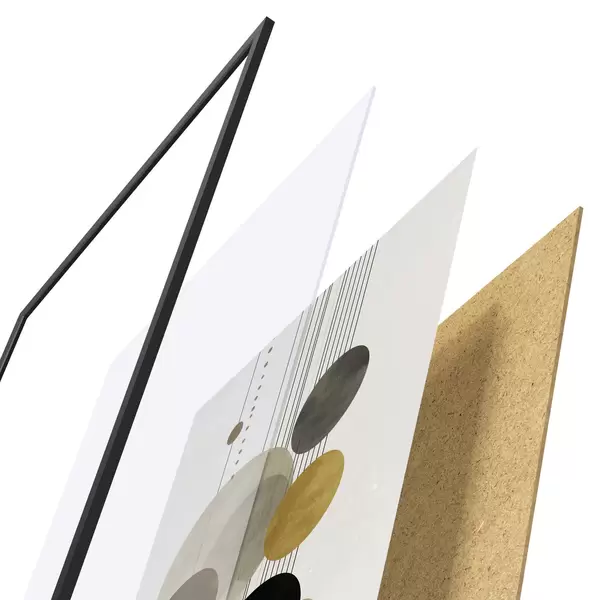 A poszter keretből, plexiből, nyomtatott képből és forgácslap hátlapból áll. A poszter a hátoldalon található rögzítőknek köszönhetően azonnal felakasztható a falra.