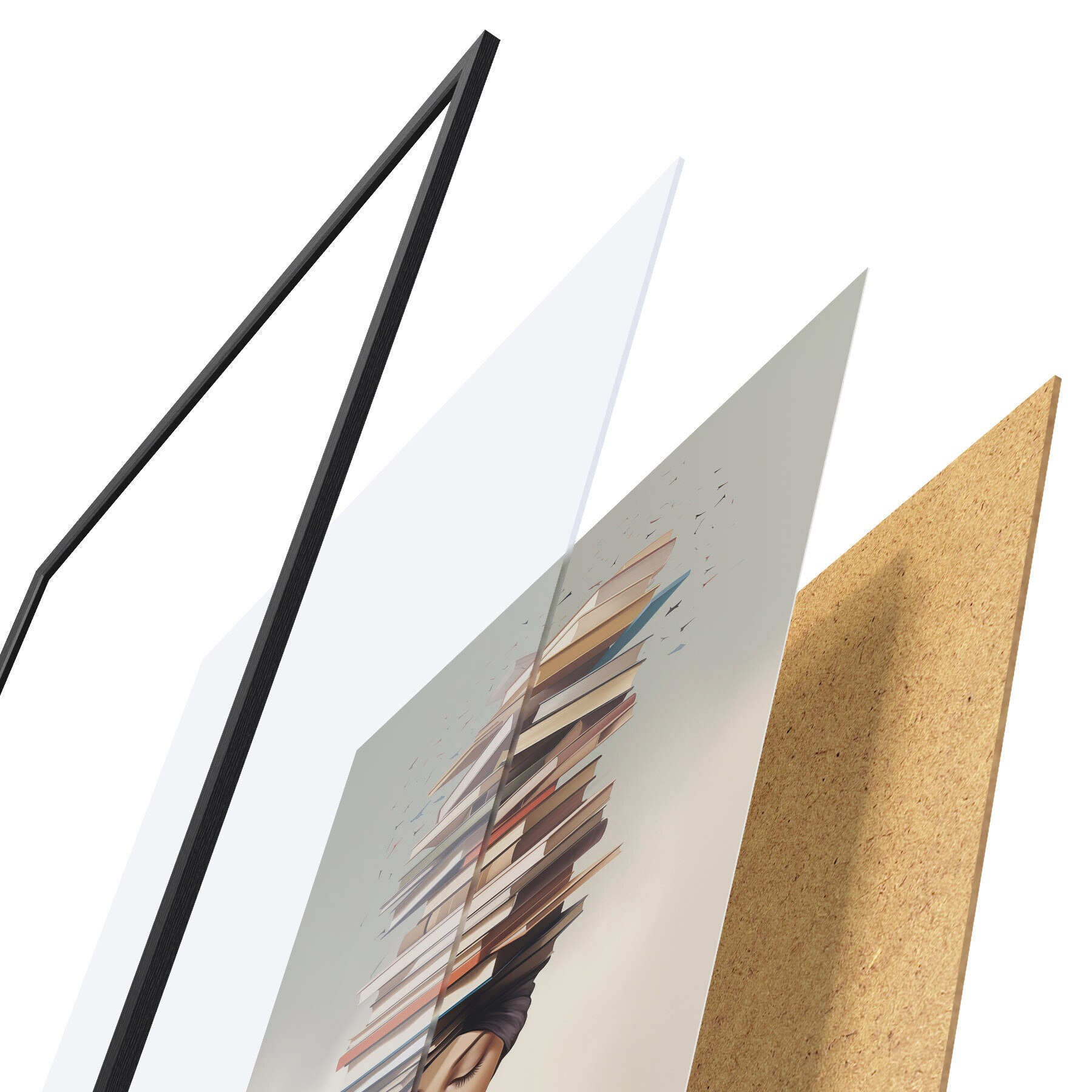 A poszter keretből, plexiből, nyomtatott képből és forgácslap hátlapból áll. A poszter a hátoldalon található rögzítőknek köszönhetően azonnal felakasztható a falra.
