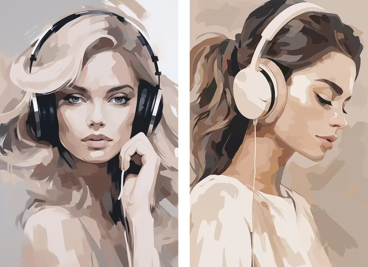 Poster Portré egy fejhallgatóval rendelkező lányról Nr d01192