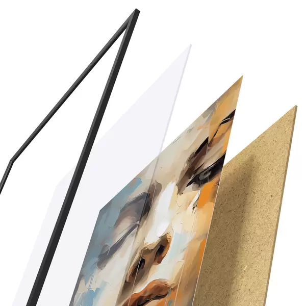 A poszter keretből, plexiből, nyomtatott képből és forgácslap hátlapból áll. A poszter a hátoldalon található rögzítőknek köszönhetően azonnal felakasztható a falra.