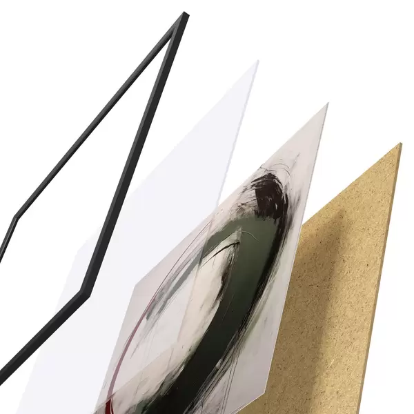 A poszter keretből, plexiből, nyomtatott képből és forgácslap hátlapból áll. A poszter a hátoldalon található rögzítőknek köszönhetően azonnal felakasztható a falra.