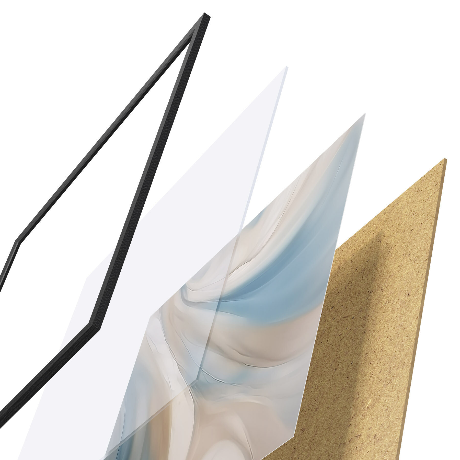 A poszter keretből, plexiből, nyomtatott képből és forgácslap hátlapból áll. A poszter a hátoldalon található rögzítőknek köszönhetően azonnal felakasztható a falra.