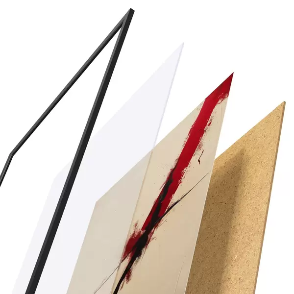 A poszter keretből, plexiből, nyomtatott képből és forgácslap hátlapból áll. A poszter a hátoldalon található rögzítőknek köszönhetően azonnal felakasztható a falra.