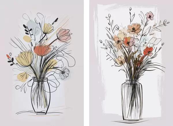 Poster Virágok vázában, rajz utánzat Nr d01224
