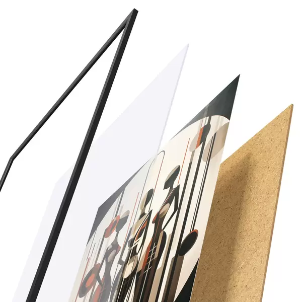 A poszter keretből, plexiből, nyomtatott képből és forgácslap hátlapból áll. A poszter a hátoldalon található rögzítőknek köszönhetően azonnal felakasztható a falra.