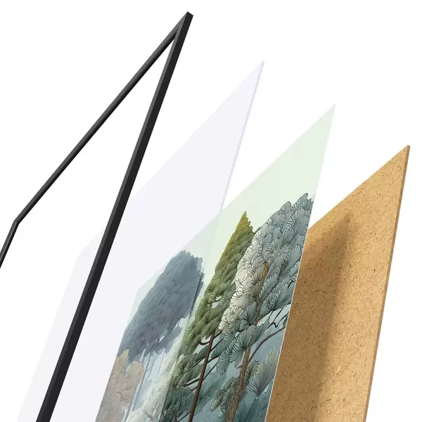 A poszter keretből, plexiből, nyomtatott képből és forgácslap hátlapból áll. A poszter a hátoldalon található rögzítőknek köszönhetően azonnal felakasztható a falra.