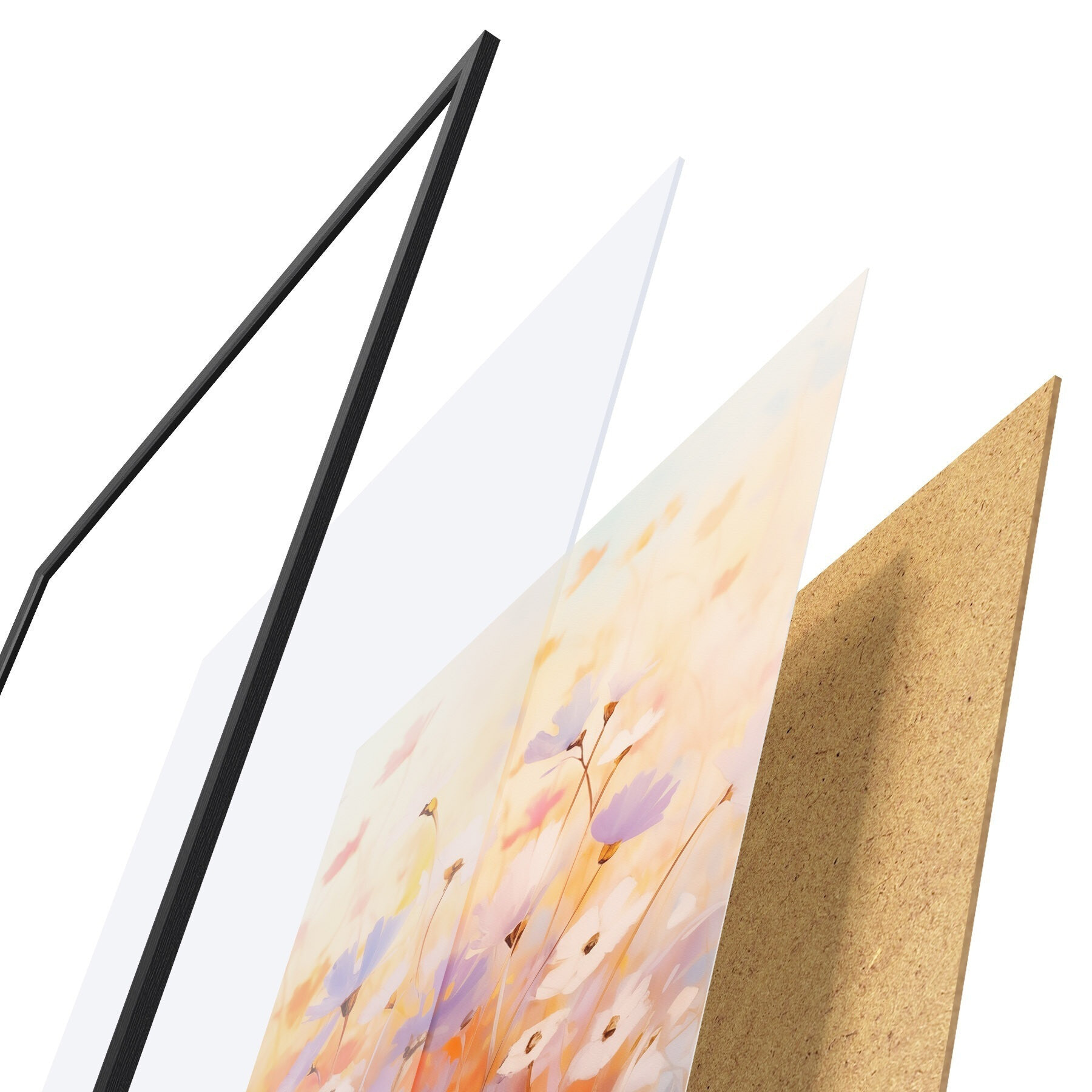 A poszter keretből, plexiből, nyomtatott képből és forgácslap hátlapból áll. A poszter a hátoldalon található rögzítőknek köszönhetően azonnal felakasztható a falra.