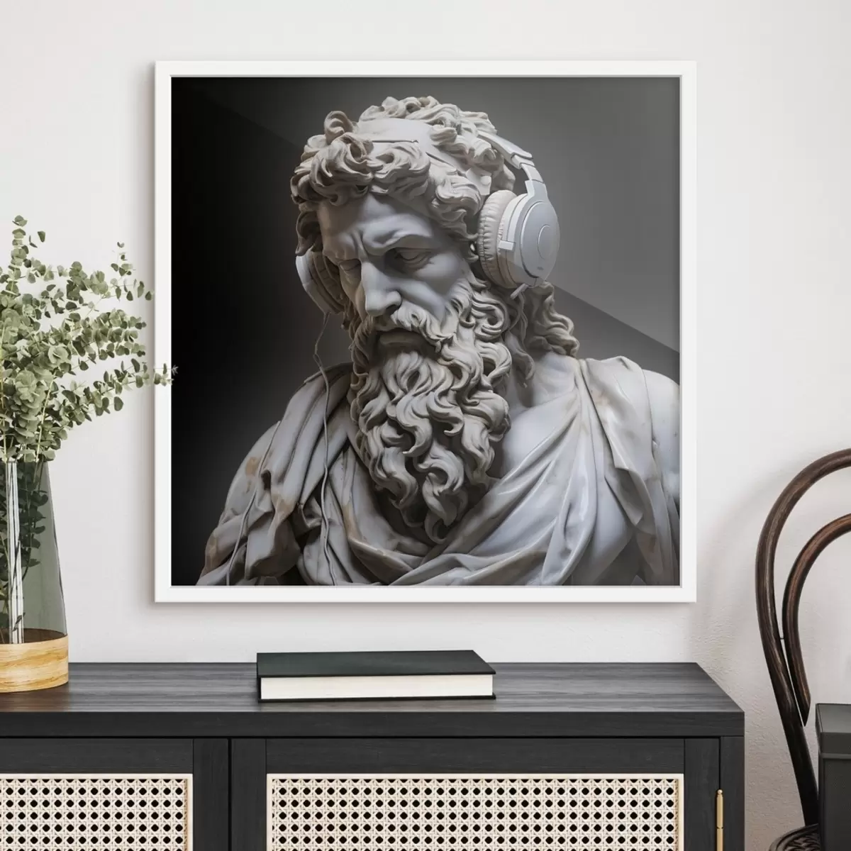 A poszter keretből, plexiből, nyomtatott képből és forgácslap hátlapból áll. A poszter a hátoldalon található rögzítőknek köszönhetően azonnal felakasztható a falra.