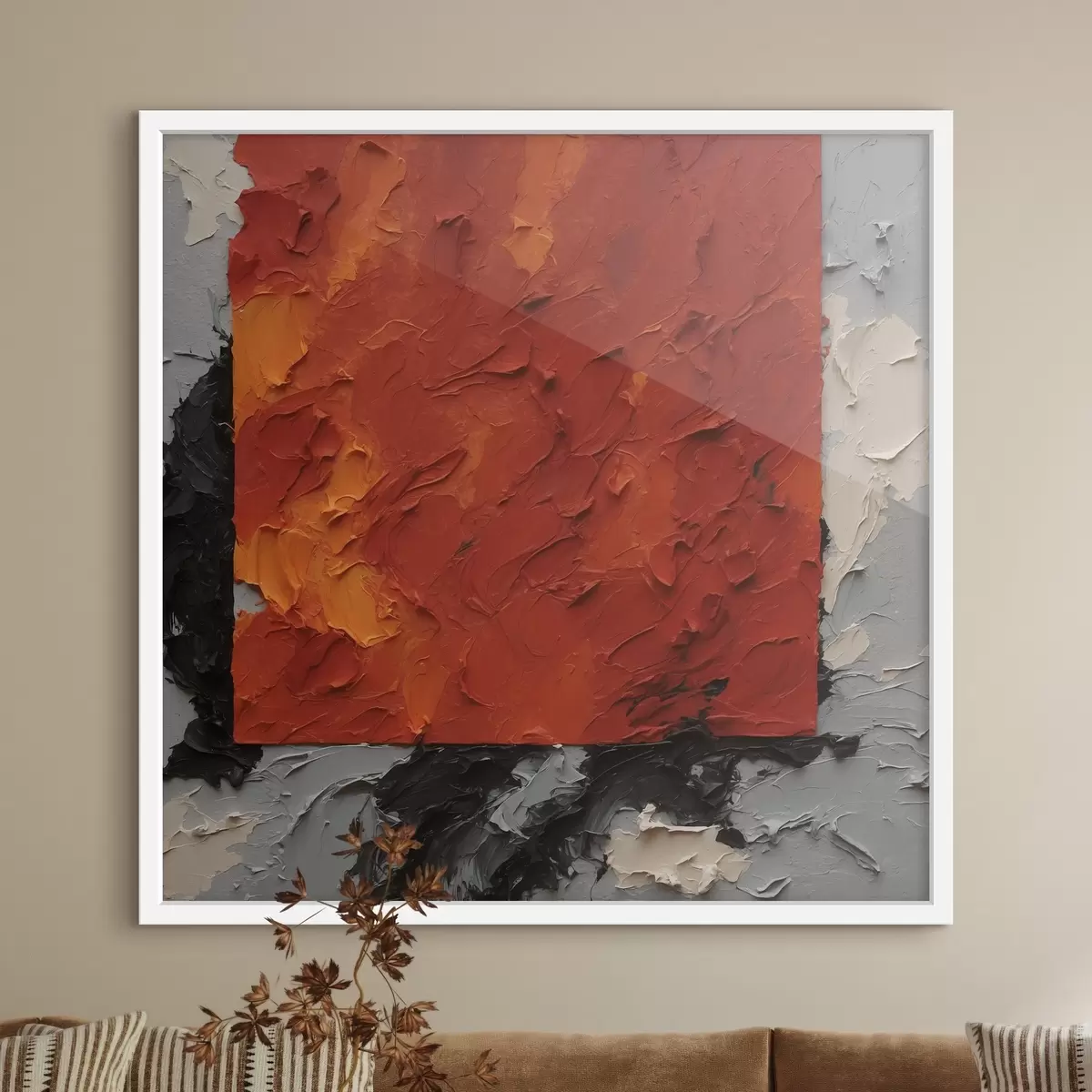 Poster Absztrakt olajfestmény piros négyzettel Nr f37167