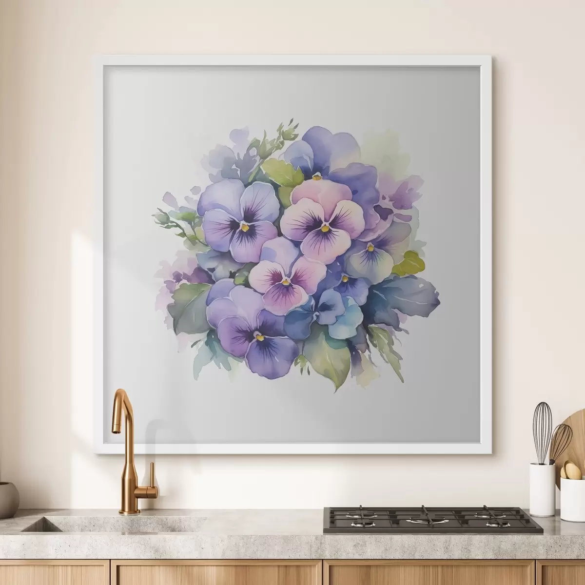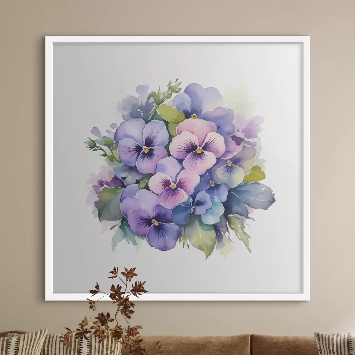Poster Ibolya akvarell illusztráció, csokor, virágok, kék, lila, zöld szín Nr f38486