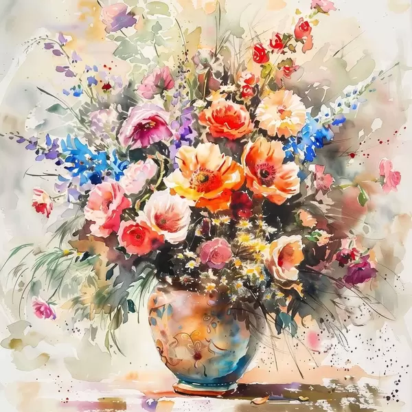Poster Élénk virágok egy bájos vázában Nr f38713