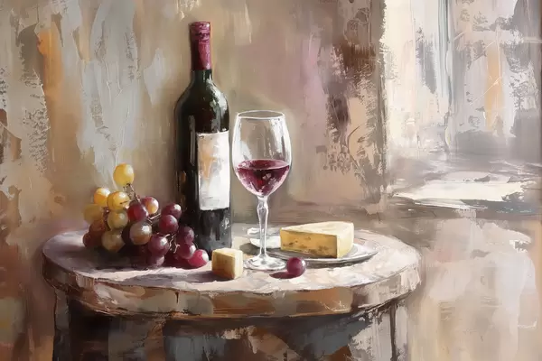 Plakát a sziklán Csendélet szőlővel és borral f38796